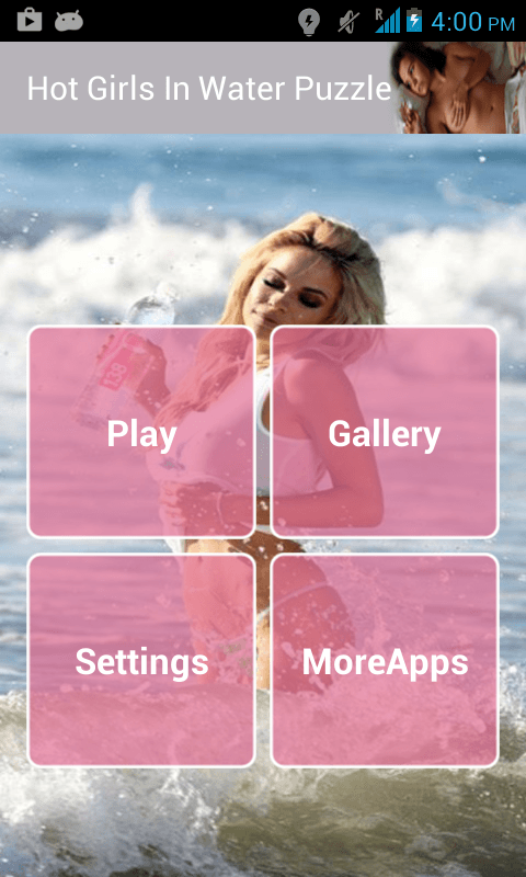 Hot Girls In Water HD Puzzle is free android app. This contains many HD quality pics Its a jigsaw puzzle application. It also give you awesome gallery. By this gallery you can save image into gallery or set as a wallpaper Its a very simple app any body can use it , It contains Hot and sexy Girls Gallery Features- ----------------------------- This contains many HD quality pics Its a jigsaw puzzle application. It also give you awesome gallery. You can also set HD image as wallpaper DISCLAIMER--- Its a free android app thus it contains some ads, but it doesn't contain any push ads or home screen ads