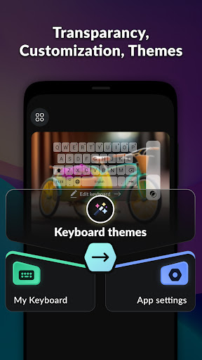 🔮 Transparency Control: Adjust the keyboard's transparency level for a easy integration with your device's background.