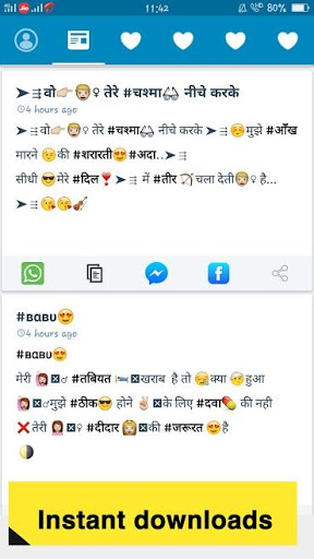 Here you can see daily updated latest Hindi font Shayari, new status and current day to day life short & full Hindi Jokes. In this app you can also see or download latest full HD photos, images of love, romance, inspirational and breakup etc.