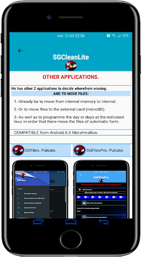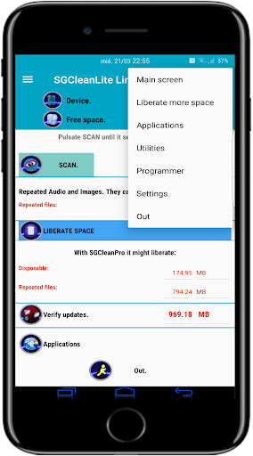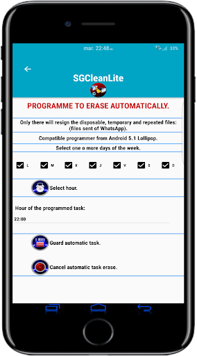 Just mark the day or days at the wished hour and SGClean will take charge liberating space without the user should do nothing more.