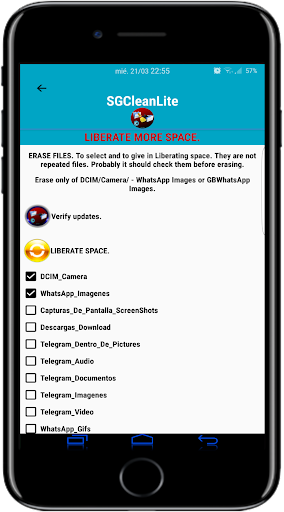 SGClean solves comfortably the problem of the message that goes out for us in the mobile periodically: " LITTLE SPACE OF STORAGE ". Liberate space.
