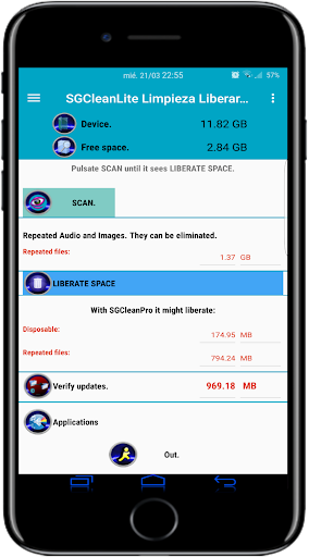 We open the application, pulsate in SCANNING up to seeing information and a button that it puts: TO LIBERATE SPACE. It indicates us what we can erase. Just to give in liberating space.