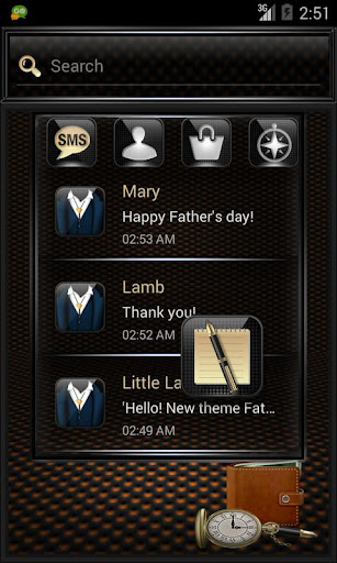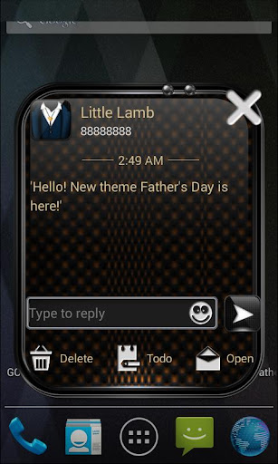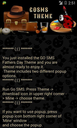 Run Go SMS. Press Theme -> download icon in upper right corner -> Mine ->