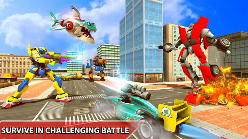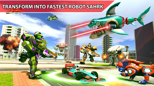 Every mech transforms war and robot battle arena will be organized inside the city. You have to transform the robot car and go around the city. When the lion robot is needed, it must be converted into a shot and its power must be used to destroy the transform disguise robot. You have to turn your heavy iron bot into a car robot in order to get to chase the fast-moving enemy. And shoot bullets & use superpowers to destroy them. If you want to fly and kill the enemy, turn your bots into a flying shark robot. Cause, shark robot has the unstoppable superpower in this transforming prime fighting game. Enemies cannot easily detect the shark robot.