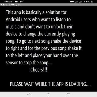 Basically The App Working is to Take Your Device Music Files & Show then in a single App.You can run the app through it and by shaking the phone you can change the current playing song.
