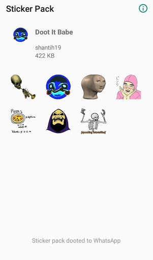 A spooky scary calcium containing sticker pack for Whatsapp. High dank levels, beware! More stickers and packs coming soon! ---Made using Whatsapp's example app.--- - WAStickerApps -