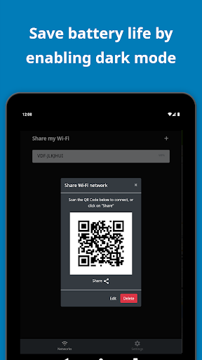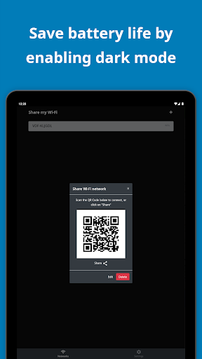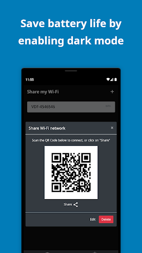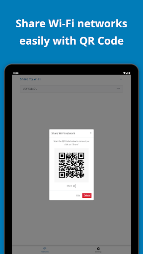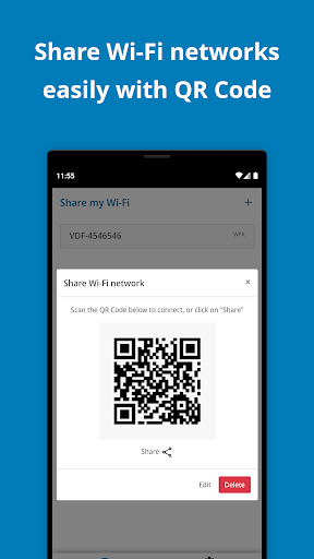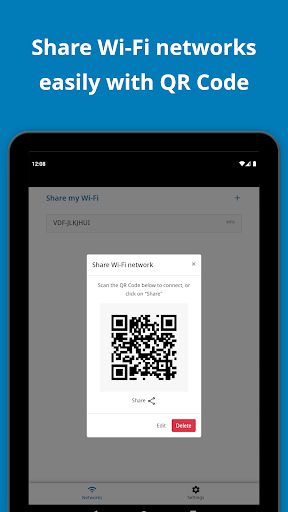Share My Wi-Fi allows you to generate and share Wi-Fi networks through QR codes or messaging/social network services.