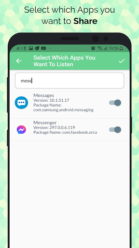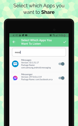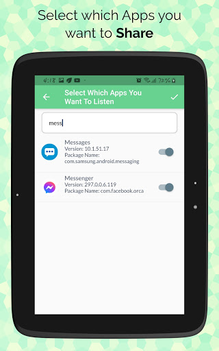 This Share Notification App is to share you and your other members' notifications in one place. You can share any of installed apps and system apps notifications.Most of the people use for social media (like Messenger, Twitter, Instagram, TikTok, etc), banking, messaging, incoming call and others.Trigger sniffing attack for good purpose or learning, you can sniffing your victim steps like chatting, who is calling him, messaging.Your login information is safe, you don't have to worry about your login information, we don't show up your login info on screen.Simply you can turn off the sharing service as you want. If you want to monitor other notifications only, you should turn off the Listen Notification switch in app setting. You can save specific notifications to show up.Query your data with notification's title and specific app.