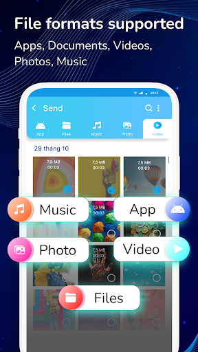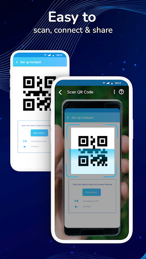 The transfer app is your answer. It enables you to transfer all files, video, photos in seconds. If you want to share files transferred from one device to another without cables or the internet, let's download this transfer application now. You can share videos, audio, photos, and files with people nearby. The best feature of smart transfer is that you can share any files from Android to Android extremely fast by using a hotspot and QR code.