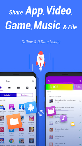 photos, videos, music, installed apps and any other files and share it without Data Usage.