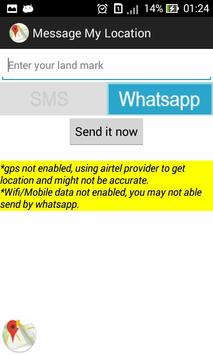 This app will help user to send details of current location with optional land mark details to friend by SMS or by using Whatsapp