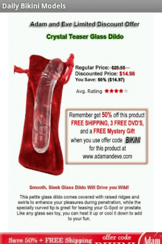 Who does not like Sexy Models? Everyone, women and men, adore perfect bodies of models! And now you have an amazing opportunity to have it on you phone. Videos and pictures of sexy models will rid you of boredom and entertain you every day. But wait! That is not all! By downloading this awesome app you will find a discount code for every purchased sex toy of the company "Adam and Eve". Enjoy the girls and the sex toys at the same time! It is fun, isnt it? Keywords: sexy models, sexy, models, sex toy, sex toys, adam and eve, women, men, discount code, girls, sex, fun