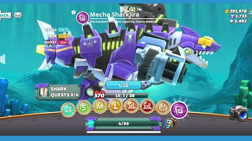 There are numerous playable sharks in the game. Each shark is assigned a mission set, which gives a variety of rewards when completed.