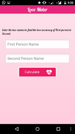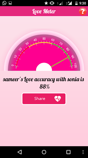Love meter is an application that finds love accuracy in terms of percentage between two person.The percentage is calculated by using First names of couple.