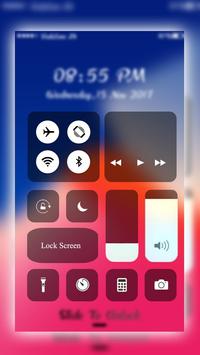 After IOS X Screen Lock active,you can control your device using shortcut. An IOS X Screen Lock has many shortcut icon on lock screen like wifi, Bluetooth, Brightness,Volume mode,flashlight,camera,calculator,calendar,settings.