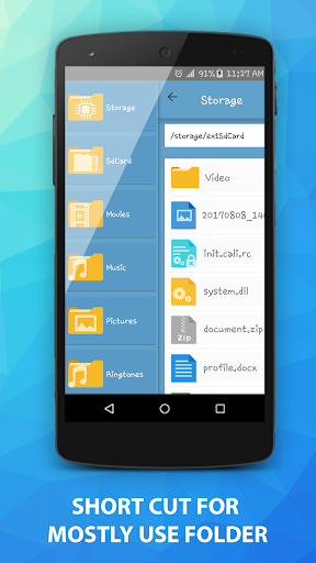 File Explorer- File Manager is like a file browser app provides browsing and access as internal storage explorer and phone SD Card contents with pretty UI design. Just click to install applications, and check zipped files. File Explorer- File Manager transfer your files easily using many option such as Bluetooth and emails. Using this file organizer you can copy and paste files between Bluetooth-ready devices and transferring files between Bluetooth devices. Other sharing media supported by File Explorer- File Manager are Mailing etc..