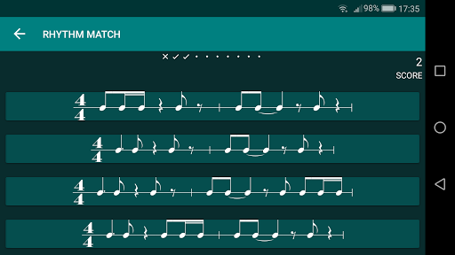 - Rhythm Match plays you a new piece of music and your task is to match it to the correct written notation.