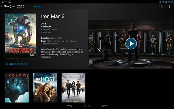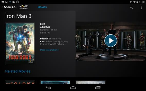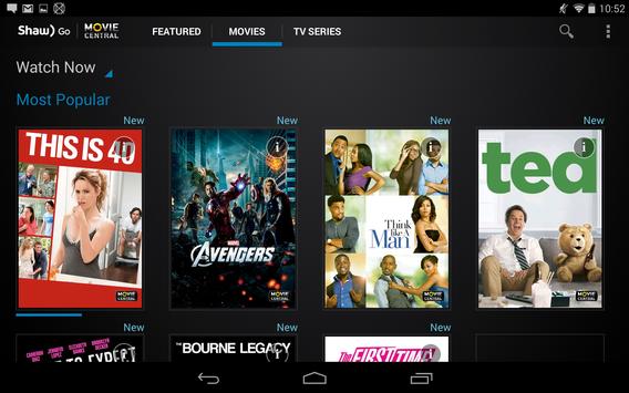 Using your Network access permissions, the Shaw Go Movie Central App will: