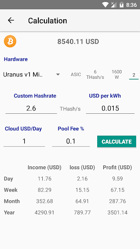 Mining Profit Calculator with ability of selecting Hardware with quantity, That help you to calculate income and loss and decide what hardware more helpful for mining.