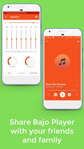 Eighteen skilled music genres planned for your selection Support all weird audio formats. a fast explore for all music files. simply set any song as your default Ringtone. will browse and play your music by albums, artists, songs, playlists, folders. Improve Sound Quality – Bass boost & Virtualizer result