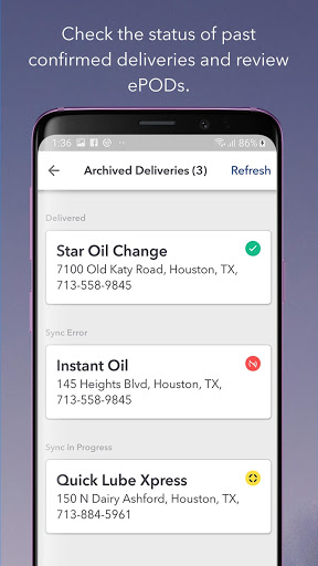 Shell Delivery Mobile offers Sign on Glass technology to our Distributor customers. The Sign on Glass technology replaces paper based delivery documents. The delivery driver confirms products and product quantities on a mobile device and captures the customer’s signature electronically. An electronic Proof of Delivery is created in real-time for the customer in Shell Market Hub.