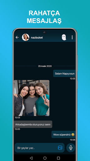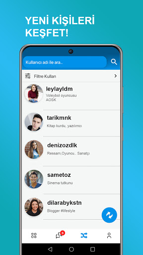 - डिस्कवर सेक्शन, आप अलग-अलग प्रोफाइल के लोगों को देख सकते हैं, उपयोगकर्ता नामों के साथ खोज कर सकते हैं, गुमनाम संदेश भेज सकते हैं, चैट करना शुरू कर सकते हैं। आप महिलाओं / पुरुषों या क्षेत्रों के रूप में फ़िल्टर कर सकते हैं। ।इस तरह, आप केवल उन लोगों के प्रोफाइल देख सकते हैं जिन्हें आप मिलना चाहते हैं। वे चैट और मैत्री एप्लिकेशन के प्रीमियम पैकेज से लाभ उठा सकते हैं।इस पैकेज के साथ, आप अधिक दृश्यमान हो सकते हैं, विज्ञापन छिपे हुए हैं, विस्तृत फ़िल्टरिंग सुविधा उपयुक्त प्रोफाइल की सूची है, आप प्रीमियम बैज कमा सकते हैं।बैज के लिए धन्यवाद, आपकी विश्वसनीयता बढ़ जाती है और आप लोगों से बहुत आसान हो सकते हैं।यदि आप जिन लोगों को परेशान करना शुरू करते हैं, वे आप फिनिश विकल्प के साथ बात कर सकते हैं।आपके सामने वाला व्यक्ति अब आपको परेशान नहीं कर सकता है