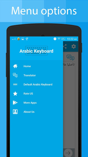 • Install Arabic Keyboard and Translator. Enable Arabic Keyboard then select Arabic Keyboard and Translator from Change Keyboard option.