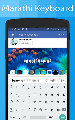 Marathi Keyboard app allows you to type emails, stories, messages, social media posts like facebook, Twitter and instagram posts in Marathi Lauguage using Marathi Keyboard.