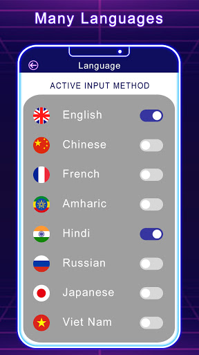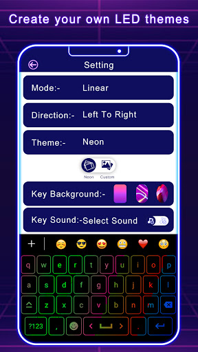 Change default keyboard with lighting LED keyboard Neon LED Keyboard application.