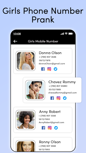 This App is developing For Entertainment Purpose Only. App doesn't provide any real mobile number of girls for chatting on social media in WhatsApp also. This is prank app