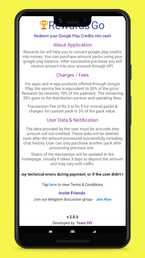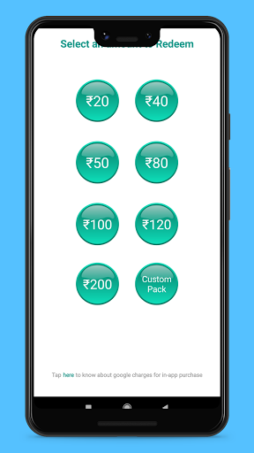 Download Rewards Go and redeem your google play credits into real money. Redeem packs from Rs.20 - Rs.5000 with transaction at just 5% of the amount.