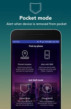 - Turn on alarm when theft try to steal while your phone was in pocket.