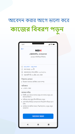 As the blue-collar workforce in Bangladesh is growing, the platform aims to provide job applicants with opportunities by helping them build a digital professional identity, a wide network, and professional training related to their skills, qualifications, and experiences to get a job. The app provides many job vacancies in Bangladesh, focusing on the following roles - call center agents, field associates, sales assistants, delivery men, office admins, brand promoters, riders, waiters, and related professions for more than a thousand renowned employers.