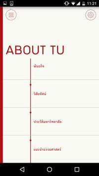แอพพลิเคชั่นสำหรับใช้ในมหาวิทยาลัยธรรมศาสตร์ มี features ที่สำคัญได้แก่ - TU Tour - Directory - Courses - TU Privilege - News - Calendar - Safety - Athletics - Dormitory - Alumni - Bus