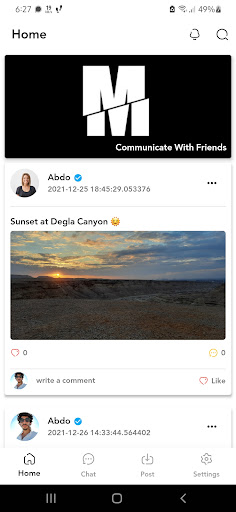 -FireStore Database handles the post's text, images, chat messages, and user status.
