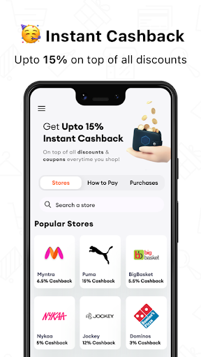Earn Extra Instant Cashback on over 2000 online stores including Amazon, Flipkart, Makemytrip, Pharmeasy, FirstCry, Myntra, BigBasket, Swiggy, and many more.