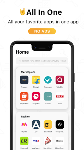 Shopwise all in one shopping app featuring 40 popular apps like Myntra, Flipkart, Snapdeal, Shopclues, PaytmMall Swiggy, Zomato, Grofers Bigbasket, Dunzo, Nykaa, TataCliq, Ajio and more. 🤩