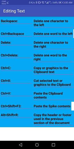 This app contains all the major shortcut keys which are easy to learn and master ! Ir is necessary for everyone who uses MS Word to learn these shortcut keys !
