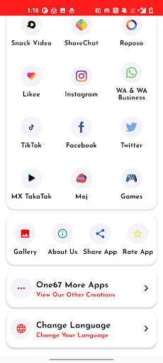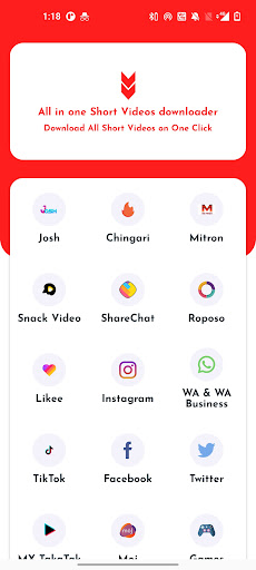 All in one short video downloader is an Android All Social Media Video and Image Downloader App. You can Save Facebook, Insta, Whatsapp Stories and TikTok, MxTakaTak, Moj, Josh, Chingari, Mitron, Sharechat, SnackVideo, Roposo, Likee, Whatsapp, WA Business, Twitter, and Instagram Videos and Images, Reel with All In One Status Saver without watermark. You can easily share them from the App. Download the App and see all the feature.