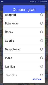 Aplikacija podržava većinu gradova u Srbiji.