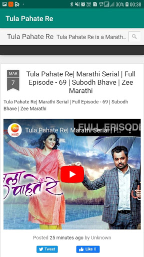 Tula Pahate Re is a Marathi-language television program aired on Zee Marathi. The show stars Subodh Bhave, Gayatri Datar, Abhidnya Bhave. It was the most expensive marathi TV show. The show had received highest TRP in Broadcast Audience Research Council.This is being remade in Kannada as Jothe Jotheyali starring Aniruddha Jatkar.