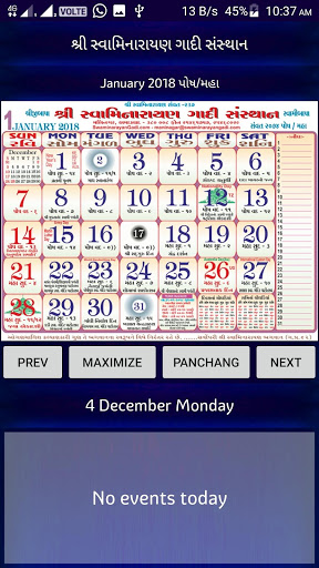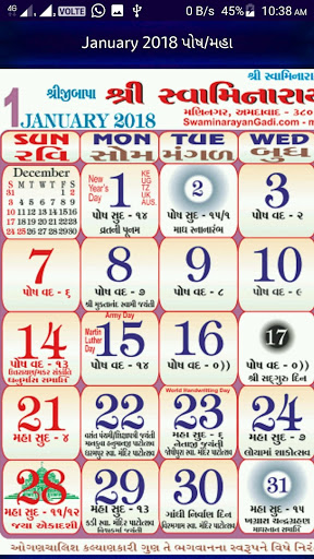 Hindu Calendar brought to you by Swaminarayan Gadi Sansthan. It includes Tithi and Panchang also.