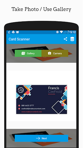 Snap a photo of a business card using your Android camera and let Card Scanner extract all necessary information.