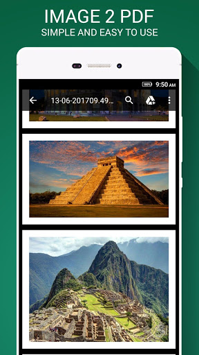 Its easily usable interface you can select any type of images like jpeg, png from your phone and convert them in pdf file instantly.