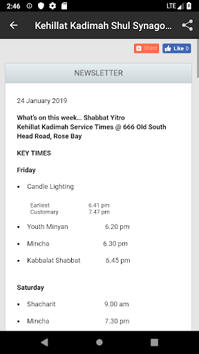 Kehillat Kadimah Limited app keeps you up-to-date with the latest news, events, minyanim and happenings at the synagogue. It also gives you the localized zmanim for the shul's location and the users current location.