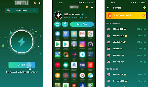Shuttle VPN proxy enables you to access all blocked internet content easily with just a click connected to global servers!