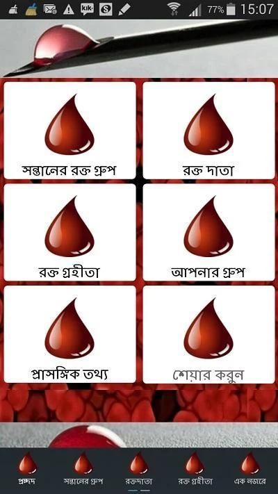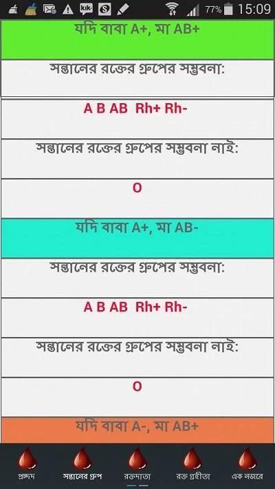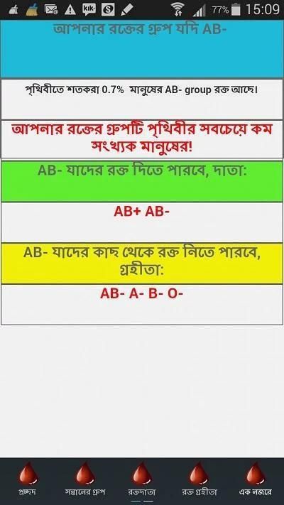 The app provides knowledge about blood group in Bengali language. It contains: