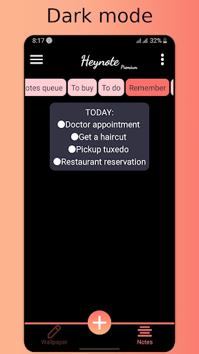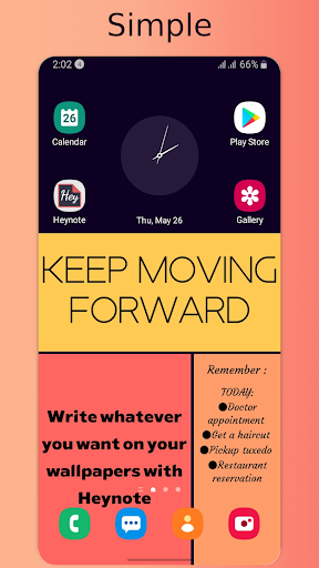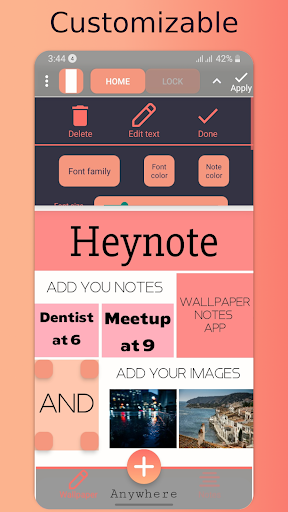 By using Heynote you won't forget anything because you'll automatically check your notes every time you open your phone, or simply have nice writings or quotes on your wallpapers which can be fully customized at any time.