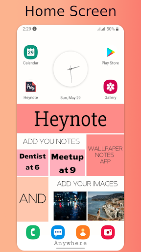 Heynote app allows you to add customizable notes, organized lists and images from storage to your stock home screen and lock screen wallpapers.