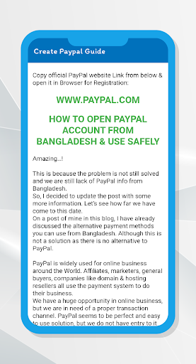 For those who don't know what PayPal is, PayPal is a bank account. This app is not for PayPal. This app only tells you how to create PayPal account. Most people do not know how to use PayPal account. And these apps are not from PayPal. This app only Education purpose and you can't create PayPal account in this app.